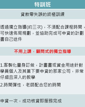 3.資金用途客製化詳解,從學員的行業屬性、所處地區,企劃書一致性,做量身指導